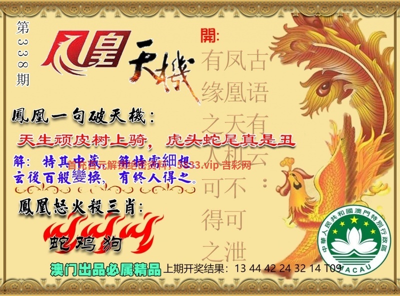 335期:天地两肖【天肖+虎鸡】开:狗44错